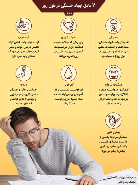 معمولا خستگی را با احساس ضعف و نداشتن انرژی در بدن تجربه می‌کنیم؛ حالتی که می‌تواند بُعد جسمی و روانی داشته یا ترکیبی از هر دو باشد. احساس خستگی به دنبال عواملی مانند فعالیت بیش از حد، محرومیت از خواب و استرس‌های طولانی ایجاد می‌شود که معمولا با استراحت برطرف می‌شوند. اما گاهی ممکن است علامتی از یک بیماری جسمی یا روانی باشد که برای برطرف کردنِ آن باید به پزشک مراجعه کرد.