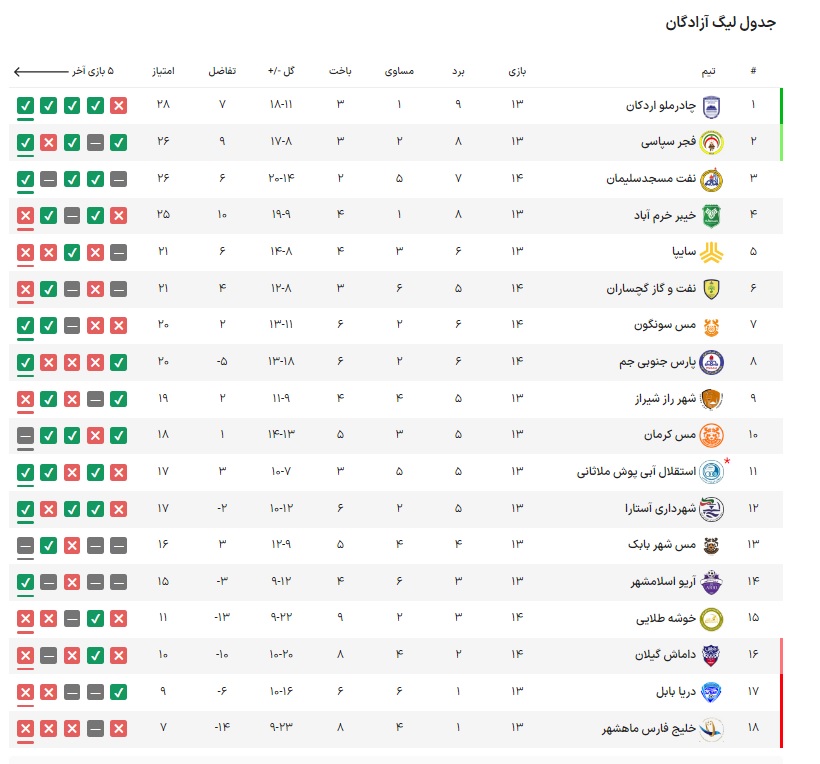 اسامی تیم نفت مسجدسلیمان در رقابت امروز عبارت بود از :