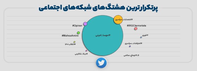 لازم به ذکر است که ۹۴ درصد از ۱۰۰ هشتگ پرکاربرد کاربران ایرانی در توییتر، هشتگهای مربوط به اعتراضات سال ۱۴۰۱ هستند.