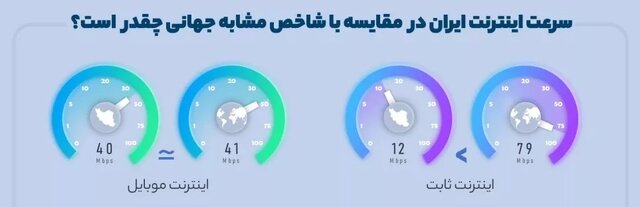 – میانگین سرعت اینترنت ثابت در ایران ۱۲ مگابیت بر ثانیه برآورد شده درحالی که میانگین سرعت اینترنت ثابت جهانی ۷۹ مگابیت بر ثانیه است. بنابراین سرعت اینترنت ثابت در ایران بهطور چشمگیری از میانگین جهانی آن کمتر است.