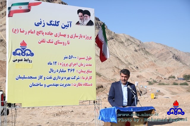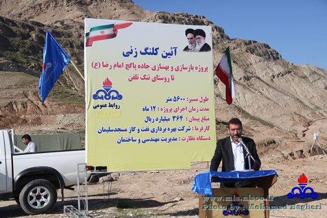 در ابتدای مراسم مدیر عامل شرکت بهره برداری نفت و گاز مسجدسلیمان طی سخنانی ضمن خیر مقدم به حاضرین و ارائه اطلاعات و مشخصات فنی پروژه عنوان نمود: این پروژه که در قالب اقدامات عام المنفعه از سوی شرکت بهره برداری نفت و گاز مسجدسلیمان جاری شده است در جهت بهسازی ۵٫۶ کیلومتر مسیر صعب العبور شامل بهسازی مسیر، احداث کانال هدایت آب های سطحی و دیوار حائل، چند دهانه پل ،آسفالت و نصب گارد ریل با مبلغ اولیه ۳۶۴ میلیارد ریال با نظارت مدیریت مهندسی و ساختمان این شرکت به پیمانکار واگذار و با اجرای آن مسیر دسترسی به منطقه بتوند در جاده مسجد سلیمان اهواز بطور تقریب ۲۰ کیلومتر کوتاهتر و از حجم ترافیک جاده ای فعلی کاسته خواهد شد.