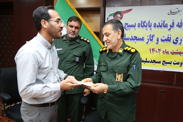 آیین تودیع فرمانده قدیم و سرپرست جدید پایگاه مقاومت بسیج صنعت نفت مسجدسلیمان برگزار شد .
